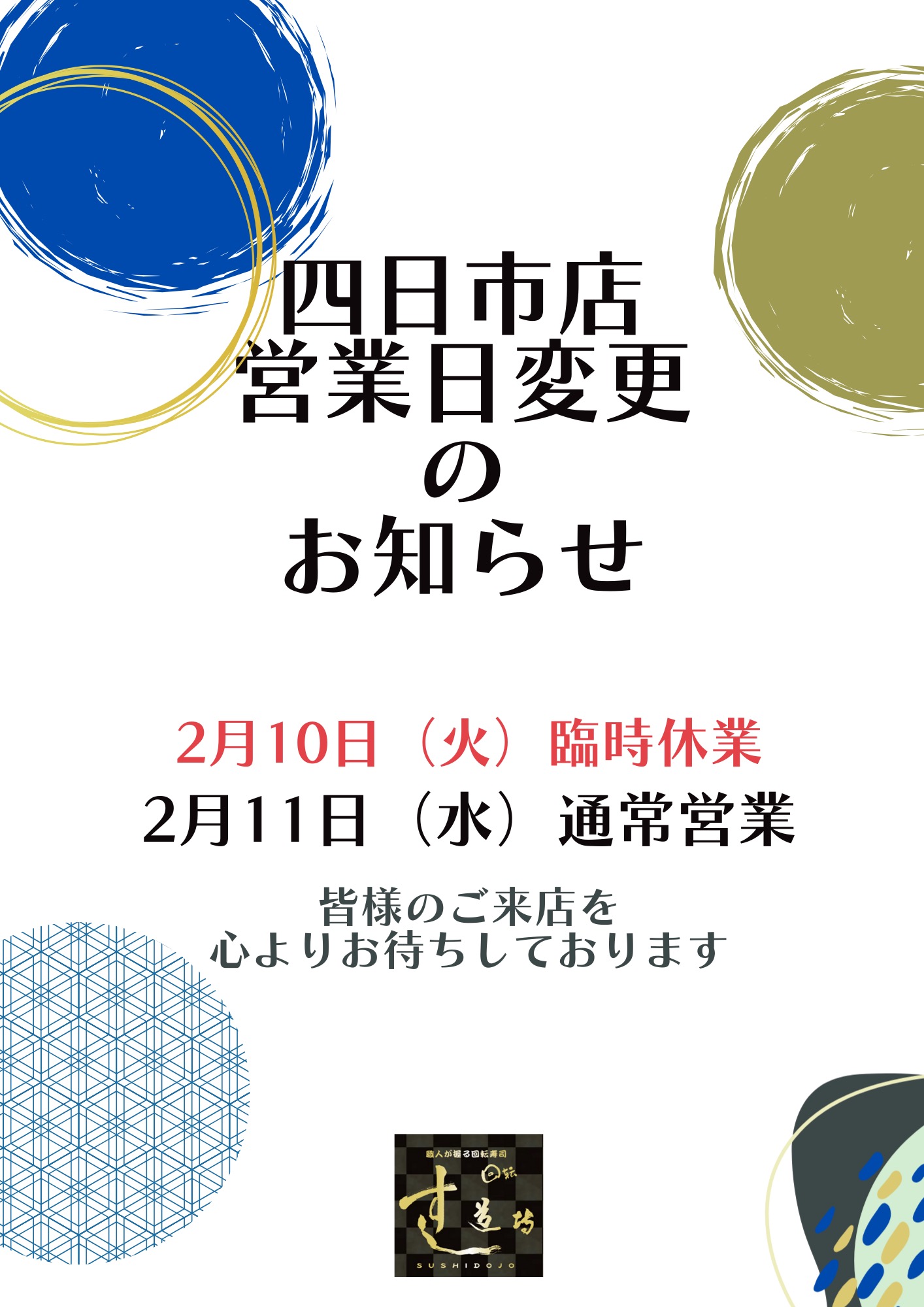 日頃はすし道場四日市店をご愛顧いただき、まことにありがとうございます。